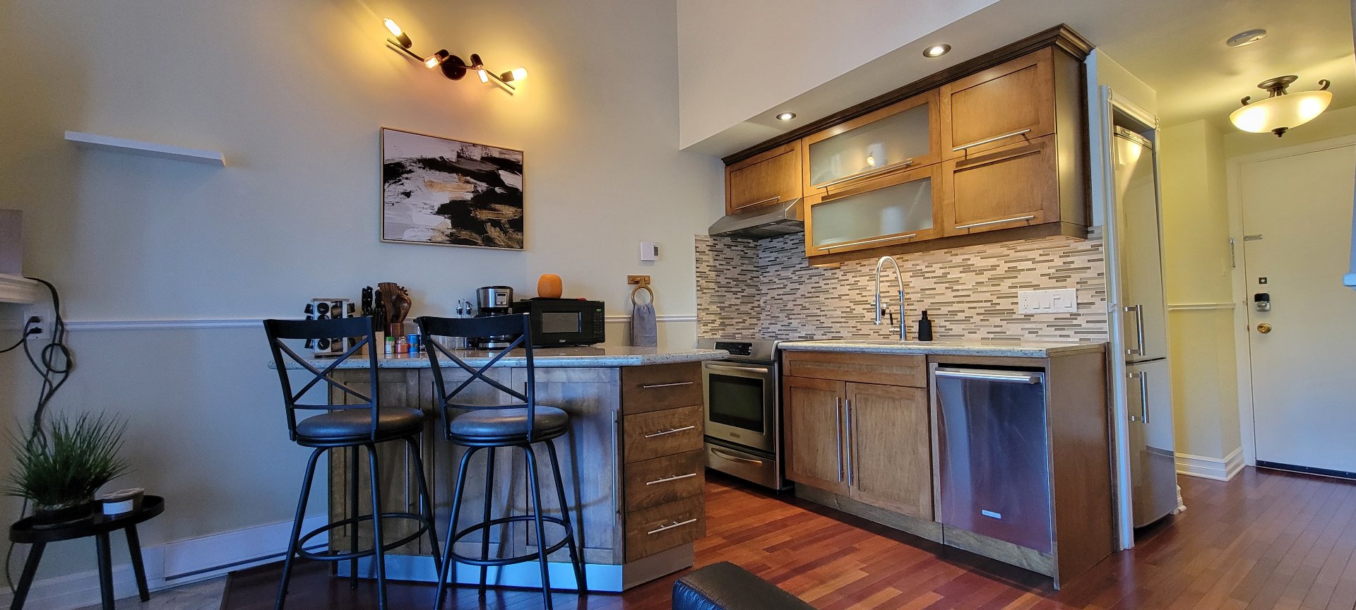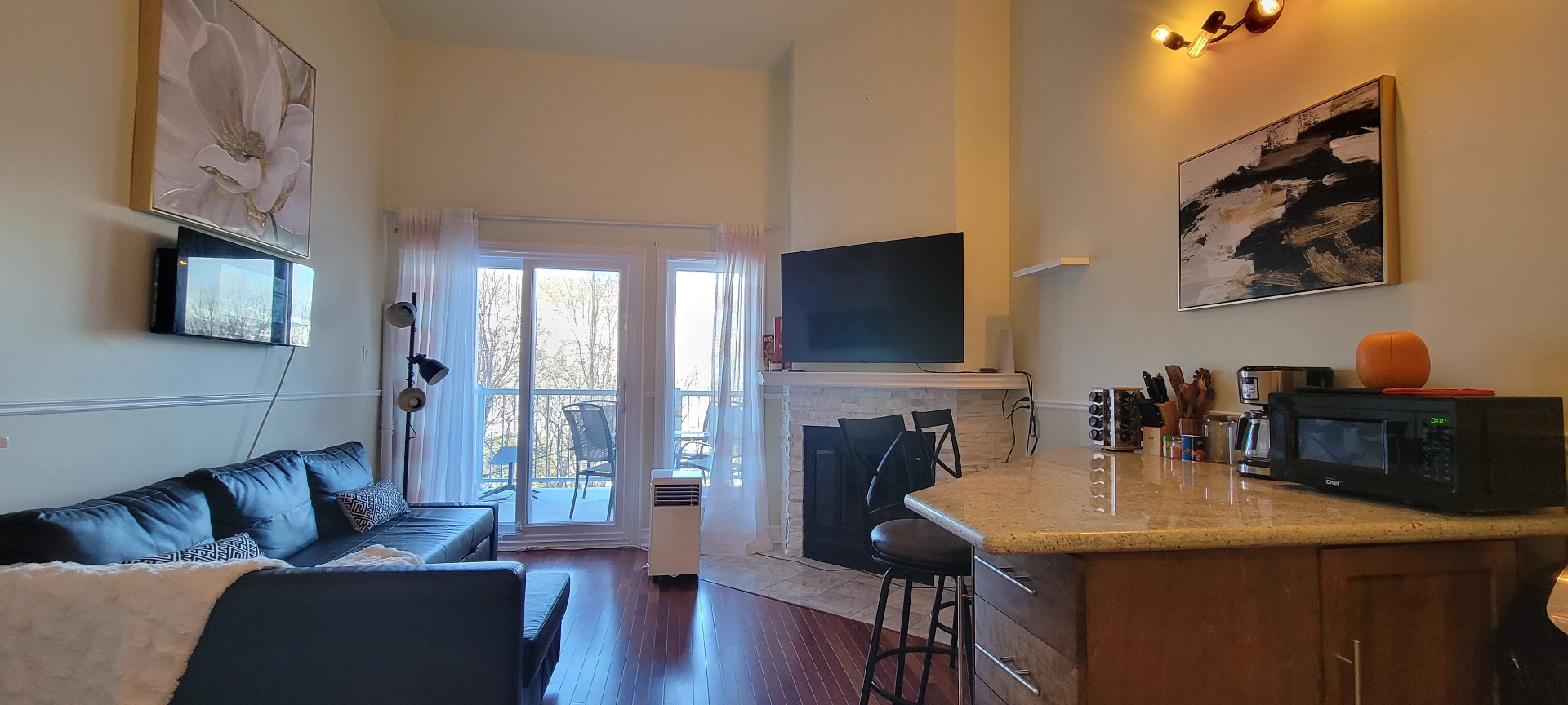 RARE OPPORTUNITÉ ! Location à court terme permise. Rénové avec goût et vendu entièrement meublé et équipé, prêt à louer ou à habiter. Situé dans le vieux village de Mont-Tremblant avec une vue imprenable sur le lac Mercier et Mont-Tremblant ! Récemment modernisé, il offre un concept à aire ouverte, de hauts plafonds et de grandes fenêtres. Navette pour la montagne à quelques minutes et accès direct à tous les services. Un cadre idyllique avec un revenu locatif. Profitez d'une vue à couper le souffle depuis votre balcon, idéal pour se détendre après une longue journée. Situé dans un emplacement de choix, ce condo est à voir absolument.