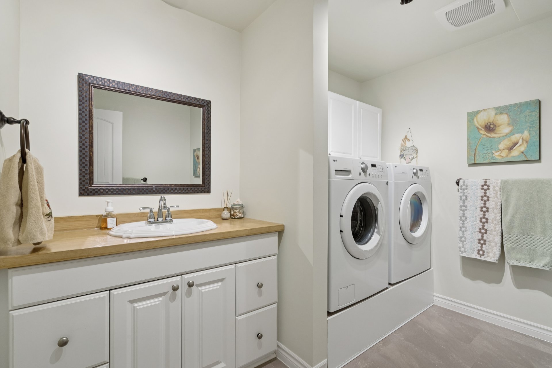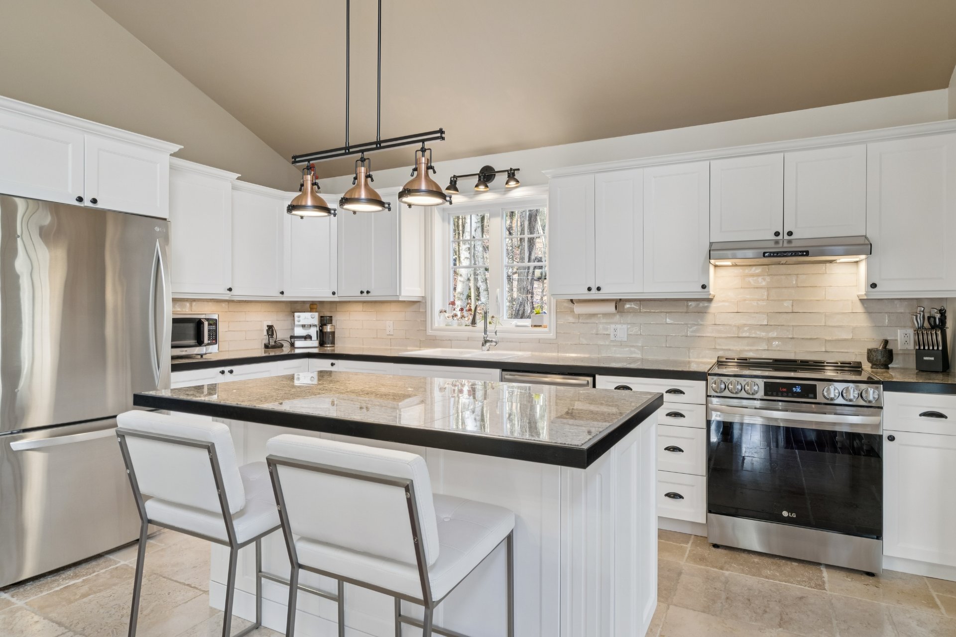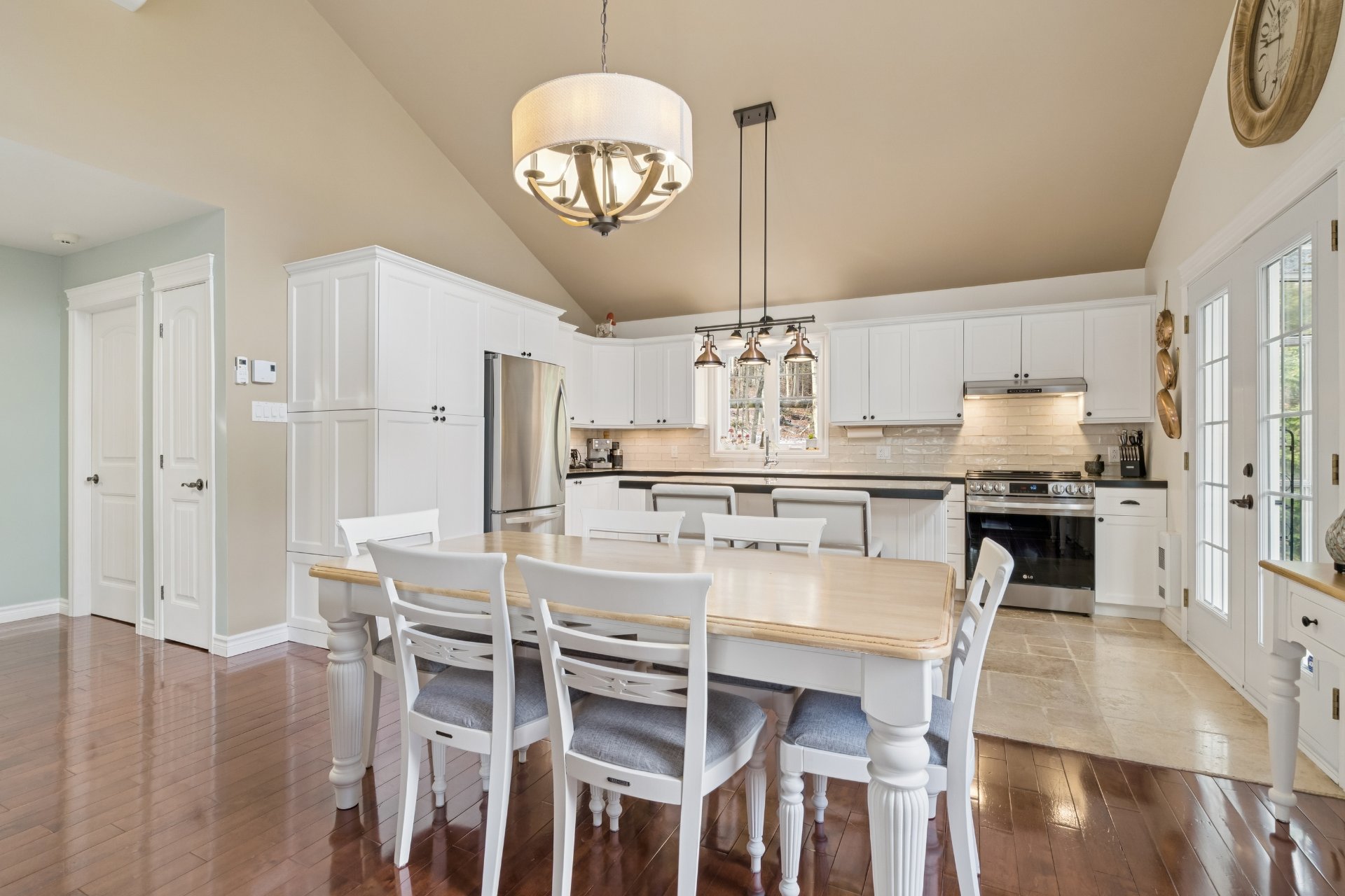 Inclus : Lave-vaisselle, laveuse et sécheuse, aspirateur central, stores, tringles et rideaux, armoire blanche du bureau, tabourets de cuisine, équipement du système d'alarme.